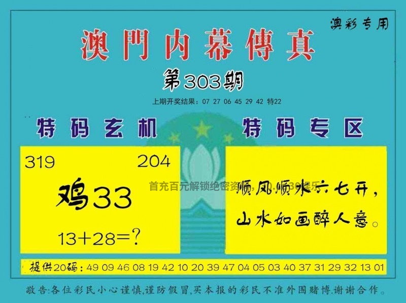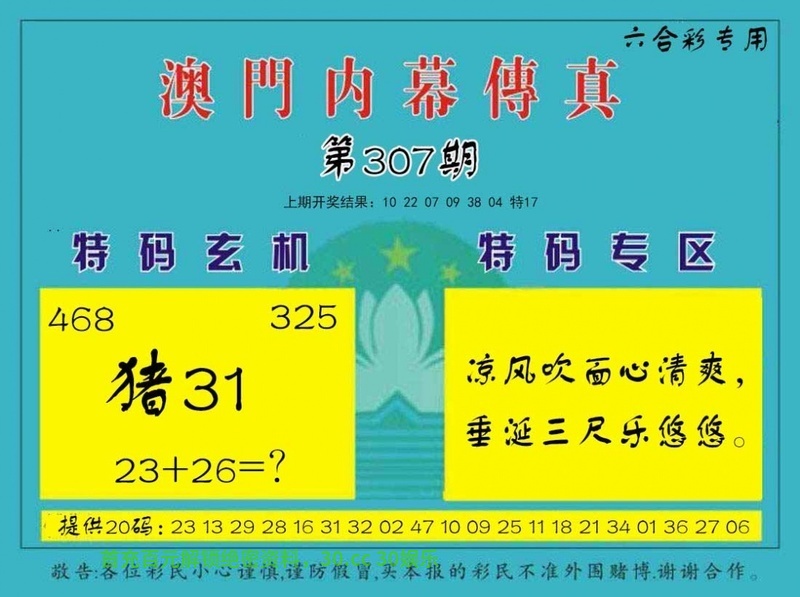 | 308期:七码 | 32.44.11.35.19.31.17 | 發00中 |